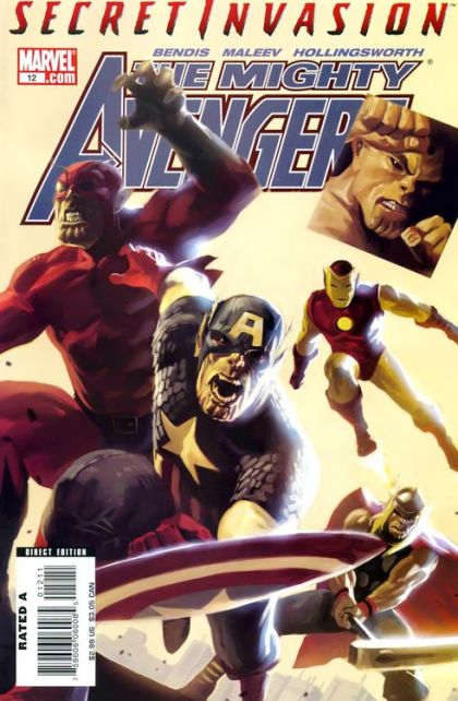 Flashing back to scenes from "Secret War" and "Spider-Woman: Origin," we learn what Nick Fury has been up to. A Skrull disguised as the Countess tried to get information from him, but he knew something was up and killed her, causing her to revert back to her natural form. With this tip-off, he visited Maria Hill and Spider-Woman to deliver warnings and solicit help. He promises to put the pieces together for the sake of humanity. We see an assortment of images of various heroes, some of which Fury has circled in blue, and some of which he's circled in red.