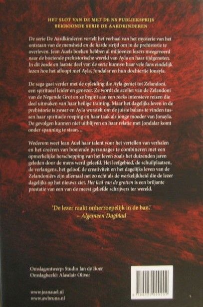 Wederom weet Jean Auel haar talent voor het vertellen van verhalen en het creëren van boeiende personages te combineren met een opmerkelijke herschepping van het leven zoals het duizenden jaren geleden door de mens werd geleefd. Het leefgebied, de schuilplaatsen, de verlangens, het geloof, de creativiteit en het dagelijks leven van de Zelandoniërs zijn allemaal net zo echt als de werkelijkheid die de lezer dagelijks op het nieuws ziet. Het lied van de grotten is een briljante prestatie van een van de meest geliefde schrijvers ter wereld.
