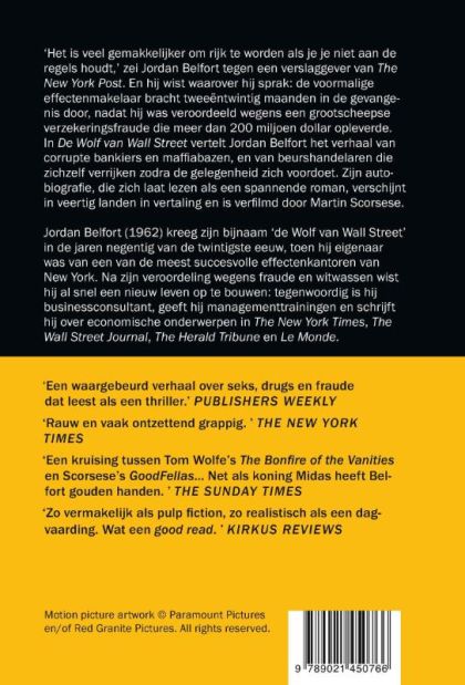 `Het is veel gemakkelijker om rijk te worden als je je niet aan de regels houdt, zei Jordan Belfort tegen een verslaggever van The New York Post. En hij wist waarover hij sprak: de voormalige effectenmakelaar bracht tweeëntwintig maanden in de gevangenis door, nadat hij was veroordeeld wegens een grootscheepse verzekeringsfraude die meer dan 200 miljoen dollar opleverde.