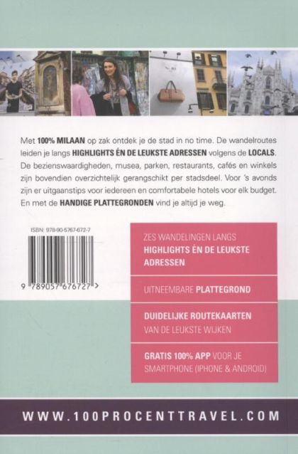 Met 100% Milaan op zak ontdek je de stad in no time. De wandelroutes leiden je langs HIGHLIGHTS ÉN DE LEUKSTE ADRESSEN volgens de LOCALS. De bezienswaardigheden, musea, parken, restaurants, cafés en winkels zijn bovendien overzichtelijk gerangschikt per stadsdeel. Voor 's avonds zijn er uitgaanstips voor iedereen en comfortabele hotels voor elk budget. En met de HANDIGE PLATTEGRONDEN vind je altijd je weg.
