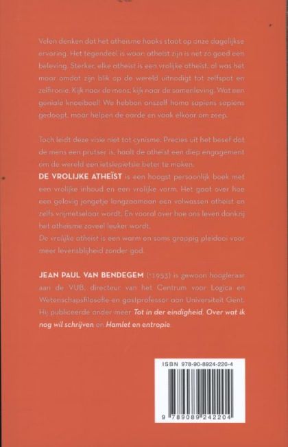 Velen denken dat het atheïsme een zuiver intellectuele levensbeschouwing is, het resultaat van een lang denkproces dat haaks staat op onze dagelijkse ervaring. Het tegendeel is waar: atheïst zijn is net zo goed een beleving, een omgaan met de wereld, een in de wereld zijn. Sterker, voor wie met een open blik onze wereld aanschouwt, kan alleen maar humor ontwaren. Elke atheïst is een vrolijke atheïst, al was het maar omdat zijn blik op de wereld uitnodigt tot zelfspot en zelfironie. Kijk naar de wereld, kijk naar de mens, kijk naar de maatschappij. Wat een geniale knoeiboel! We hebben onszelf homo sapiens sapiens gedoopt maar helpen de aardbol om zeep. Toch leidt deze visie niet tot cynisme, integendeel, precies uit het besef dat de mens een prutser is, haalt de atheïst een diep engagement om de wereld iets beters te maken (met alle onverwachte gevolgen van dien).
