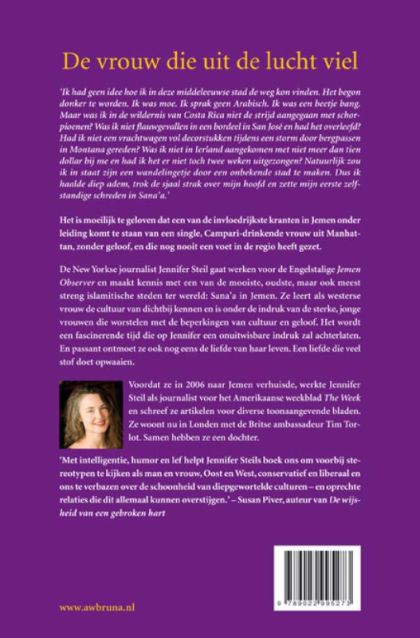 In De vrouw die uit de lucht viel vertelt Jennifer Steil met humor, verwondering en groeiend inzicht in de Arabische manier van denken en leven, de rol van media en hoe het is om als westerse vrouw te leven in een streng islamitisch land.