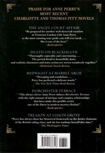 Gripping and provocative, the latest Thomas and Charlotte Pitt mystery by New York Times bestselling author Anne Perry peers unflinchingly into the corrupt affairs of Victorian society on the brink of the century's turn. The world is poised for social and political change, but England holds tight to its traditions, classes, and prejudices. When an explosion in London kills two policemen and seriously injures three more, many believe that anarchists are the culprits. But Thomas Pitt, commander of Special Branch, knows the city's radical groups well enough to suspect that someone with decidedly more personal motives lit the deadly fuse. As he investigates the source of the fatal blast, Pitt is stunned to discover that the bombing was a calculated strike against the ranks of law enforcement. But still more shocking revelations await, as Pitt's inquiries lead him to a member of Parliament hoping for a lucrative business deal, a high-ranking police officer with secrets to keep, and an aristocratic opium addict seeking murderous revenge. As he pursues each increasingly threatening lead, Pitt finds himself impeded at every turn by the barriers put in place to protect the rich and powerful--barriers that, as they start to crumble, threaten to bury him alive. Praise for Anne Perry's most recent Charlotte and Thomas Pitt novels The Angel Court Affair "Be prepared for another well-deserved vacation to Victorian London with Anne Perry as the most cunning tour guide you will ever need. . . . She is one of the best."--Bookreporter Death on Blackheath "Thoroughly enjoyable and entertaining . . . The period detail is beautifully done, and realistic characters and tense action are woven seamlessly together."--Historical Novels Review Midnight at Marble Arch "Sweeping and scandalous . . . Perry has perfected a delicate touch."--The New York Times Book Review Dorchester Terrace "The always clever Anne Perry infuses Dorchester Terrace with the right amount of intrigue and complex relationships that have made this prolific series one of the finest in modern mystery fiction."--Bookreporter Treason at Lisson Grove "Perry has always done her historical homework on the darker elements of the British ruling class, and she has outdone herself this time."--The Washington Times