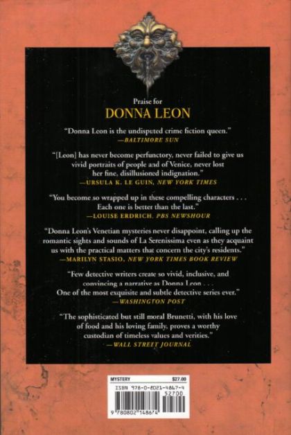 When Dottoressa Donato calls the Questura to report that a dying patient at the hospice Fatebenefratelli wants to speak to the police, Commissario Guido Brunetti and his colleague, Claudia Griffoni, waste no time in responding. "They killed him. It was bad money. I told him no," Benedetta Toso gasps the words about her recently-deceased husband, Vittorio Fadalto. Even though he is not sure she can hear him Brunetti softly promises he and Griffoni will look into what initially appears to be a private family tragedy. They discover that Fadalto worked in the field collecting samples of contamination for a company that measures the cleanliness of Venice's water supply and that he had died in a mysterious motorcycle accident. Distracted briefly by Vice Questore Patta's obsession with youth crime in Venice, Brunetti is bolstered once more by the remarkable research skills of Patta's secretary, Signora Elettra Zorzi. Piecing together the tangled threads, in time Brunetti comes to realize the perilous meaning in the woman's accusation and the threat it reveals to the health of the entire region. But justice in this case proves to be ambiguous, as Brunetti is reminded it can be when, seeking solace, he reads Aeschylus's classic play The Eumenides. As she has done so often through her memorable characters and storytelling skill, Donna Leon once again engages our sensibilities as to the differences between guilt and responsibility.