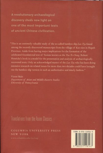 Robert Henricks now presents the first English translation of the "bamboo slip Laozi." Differing substantially from other versions we have of the text, the Guodian Laozi provides us with clues on how and when the text came into being. As Henricks's translation shows, many chapters are missing in this form of the text, and some chapters remain incomplete. All of this seems to suggest that the Tao Te Ching was not yet "complete" when these slips were copied.