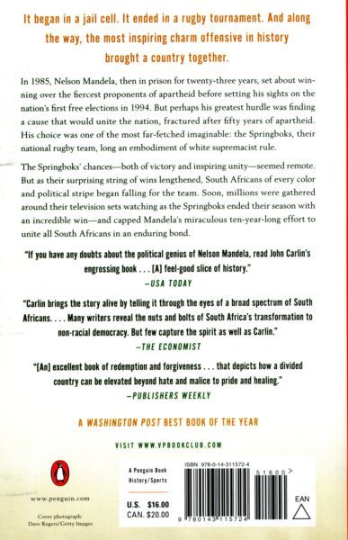 Read the book that inspired the Academy Award and Golden Globe winning 2009 film INVICTUS featuring Morgan Freeman and Matt Daymon, directed by Clint Eastwood.Beginning in a jail cell and ending in a rugby tournament- the true story of how the most inspiring charm offensive in history brought South Africa together. After being released from prison and winning South Africa's first free election, Nelson Mandela presided over a country still deeply divided by fifty years of apartheid. His plan was ambitious if not far-fetched: use the national rugby team, the Springboks-long an embodiment of white-supremacist rule-to embody and engage a new South Africa as they prepared to host the 1995 World Cup. The string of wins that followed not only defied the odds, but capped Mandela's miraculous effort to bring South Africans together again in a hard-won, enduring bond.