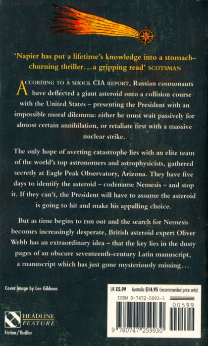 Can a 400 year-old manuscript be the key to saving the world? CIA listening posts have detected evidence of an extraordinary operation by cosmonauts of the resurgent and aggressive Russian regime - a plan to deflect a giant asteroid into a collision course with the United States. The result would be unimaginable devastation, and the West's top astrophysicists are secretly assembled to try and find a way of averting total disaster. But the key to finding the asteroid is an incredible one - its course was predicted in an obscure Renaissance manuscript, the only copy of which has now gone mysteriously missing...