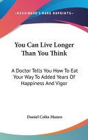 ""You Can Live Longer Than You Think"" is a book written by Dr. Daniel Colin Munro, which provides readers with practical advice on how to add years of happiness and vigor to their lives through proper nutrition. The book explores the science behind aging and how it can be slowed down by making simple changes in your diet. Dr. Munro explains how certain foods can help prevent chronic diseases, such as heart disease and cancer, and improve overall health and wellbeing. He also provides tips on how to incorporate these foods into your daily diet and offers delicious and healthy recipes to try. The book is written in an easy-to-understand language and is suitable for anyone who wants to improve their health and longevity.This scarce antiquarian book is a facsimile reprint of the old original and may contain some imperfections such as library marks and notations. Because we believe this work is culturally important, we have made it available as part of our commitment for protecting, preserving, and promoting the world's literature in affordable, high quality, modern editions, that are true to their original work.