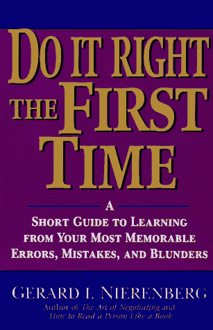 The ultimate guide to identifying and reducing mishaps--both atwork and in life Your mistakes need not be a fact of life. We can all learn to makefewer of them. In Do It Right the First Time, world renownedpersonal improvement guru Gerard Nierenberg shows us just how wecan reduce the number of errors we make--both in and out of lifeand the workplace. Nierenberg's Error Awareness System teaches ushow to increase our sensitivity and cut down on the errors wemake--and guard against those made by others that affect us. Heshows us how to identify the causes of our errors, how to deal withthem--and most importantly--how to prevent them from recurring.Packed with real-life examples, discussion questions, checklists,and helpful exercises, Do It Right the First Time covers: * Ways to reduce errors in critical thinking and judgment * Improving memory * Recognizing patterns in error * How managers and supervisors can reduce errors--awareness andaction, effective feedback, quality control, with no shame, noblame * Concentration and accuracy--focusing on the job at hand * Clerical errors and what they cost--understanding transportation,omission, insertion, repetition, substitution * How to turn mistakes into benefits For all professionals, academics, and businesspeople, includingmanagers, supervisors, and anyone who simply wants to reduce thenumber of errors in his or her life, this unique book isindispensable.