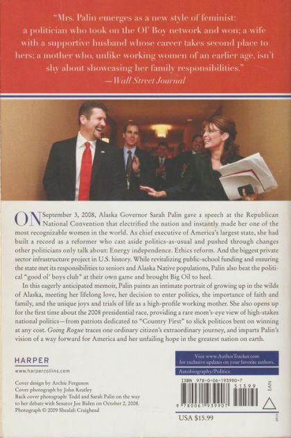 On September 3, 2008, Alaska Governor Sarah Palin gave a speech at the Republican National Convention that electrified the nation and instantly made her one of the most recognizable women in the world. As chief executive of America’s largest state, she had built a record as a reformer who cast aside politics-as-usual and pushed through changes other politicians only talk about: Energy independence. Ethics reform. And the biggest private sector infrastructure project in U.S. history. While revitalizing public-school funding and ensuring the state met its responsibilities to seniors and Alaska Native populations, Palin also beat the political "good ol’ boys club" at their own game and brought Big Oil to heel. In this eagerly anticipated memoir, Palin paints an intimate portrait of growing up in the wilds of Alaska, meeting her lifelong love, her decision to enter politics, the importance of faith and family, and the unique joys and trials of life as a high-profile working mother. She also opens up for the first time about the 2008 presidential race, providing a rare mom's-eye view of high-stakes national politics—from patriots dedicated to "Country First" to slick politicos bent on winning at any cost. Going Rogue traces one ordinary citizen's extraordinary journey, and imparts Palin's vision of a way forward for America and her unfailing hope in the greatest nation on earth.