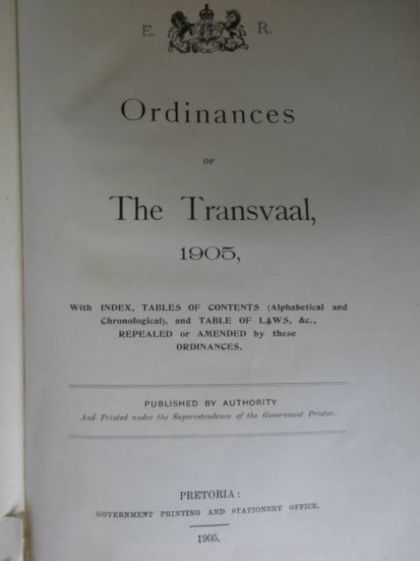 Ordinances of the Transvaal 1905