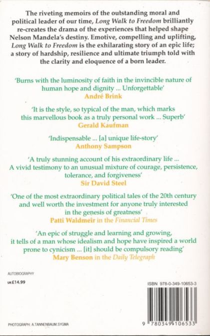 The riveting memoirs of the outstanding moral and political leader of our time, A LONG WALK TO FREEDOM brilliantly re-creates the drama of the experiences that helped shape Nelson Mandela's destiny. Emotive, compelling and uplifting, A LONG WALK TO FREEDOM is the exhilarating story of an epic life; a story of hardship, resilience and ultimate triumph told with the clarity and eloquence of a born leader.'Burns with the luminosity of faith in the invincible nature of human hope and dignity ... Unforgettable' Andre Brink 'Enthralling ... Mandela emulates the few great political leaders such as Lincoln and Gandhi, who go beyond mere consensus and move out ahead of their followers to break new ground' Donald Woods in the SUNDAY TIMES