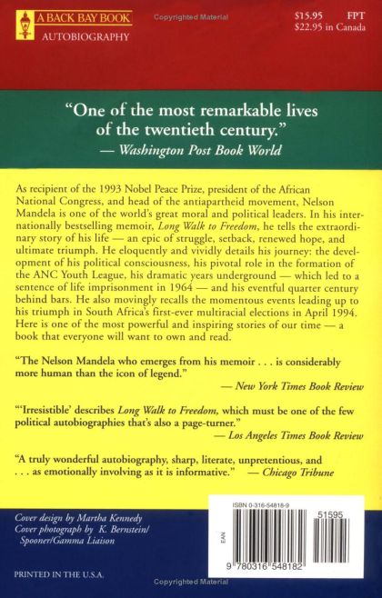 Nelson Mandela is one of the great moral and political leaders of our an international hero whose lifelong dedication to the fight against racial oppression in South Africa won him the Nobel Peace Prize and the presidency of his country.Since his triumphant release in 1990 from more than a quarter-century of imprisonment, Mandela has been at the center of the most compelling and inspiring political drama in the world. As president of the African National Congress and head of South Africa's anti-apartheid movement, he was instrumental in moving the nation toward multiracial government and majority rule. He is revered everywhere as a vital force in the fight for human rights and racial equality.The foster son of a Thembu chief, Mandela was raised in the traditional, tribal culture of his ancestors, but at an early age learned the modern, inescapable reality of what came to be called apartheid, one of the most powerful and effective systems of oppression ever conceived. In classically elegant and engrossing prose, he tells of his early years as an impoverished student and law clerk in a Jewish firm in Johannesburg, of his slow political awakening, and of his pivotal role in the rebirth of a stagnant ANC and the formation of its Youth League in the 1950s.He describes the struggle to reconcile his political activity with his devotion to his family, the anguished breakup of his first marriage, and the painful separations from his children. He brings vividly to life the escalating political warfare in the fifties between the ANC and the government, culminating in his dramatic escapades as an underground leader and the notorious Rivonia Trial of 1964, at which he was sentenced to life imprisonment. Herecounts the surprisingly eventful twenty-seven years in prison and the complex, delicate negotiations that led both to his freedom and to the beginning of the end of apartheid. Finally he provides the ultimate inside account.