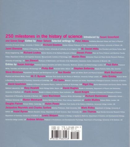 From the world's greatest scientists comes the world's greatest science book--now in a smaller format at a great affordable price. With a foreword written by acclaimed author Simon Singh (Fermat's Last Theorem), and essays by such major writers as Richard Dawkings, Susan Greenfield, and John Gribbin, it presents 250 of the most significant milestones in the history of scientific discovery. Accompanying this unique perspective on our ever-evolving view of the universe are some of the most visually dramatic illustrations you'll ever see. Short, lucid articles focus on everything from the speculations of the ancient Greeks to today's Nobel Prize winners, from Ptolemy's theory of an earth-centered universe to the first steps on the moon, and from the dawning of the concept of zero to the cloning of Dolly the sheep. Biology, physics, astronomy, medicine and mathematics: the breakthroughs in every field are all here and celebrated, in the first truly accessible, fully illustrated story of science.