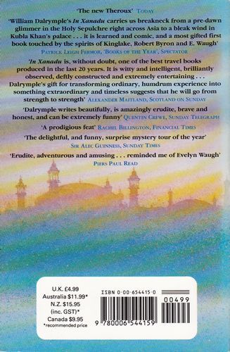 One of the most successful, influential and acclaimed travel books of recent years from the author of 'Return of a King', which has been shortlisted for the Samuel Johnson prize. At the age of twenty-two, William Dalrymple left his college in Cambridge to travel to the ruins of Kublai Khan's stately pleasure dome in Xanadu. This is an account of a quest which took him and his companions across the width of Asia, along dusty, forgotten roads, through villages and cities full of unexpected hospitality and wildly improbable escapades, to Coleridge's Xanadu itself. At once funny and knowledgeable, In Xanadu is in the finest tradition of British travel writing. Told with an exhilarating blend of eloquence, wit, poetry and delight, it is already established as a classic of its kind.