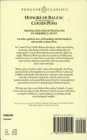 Mild, harmless and ugly to behold, the impoverished Pons is an ageing musician whose brief fame has fallen to nothing. Living a placid Parisian life as a bachelor in a shared apartment with his friend Schmucke, he maintains only two passions: a devotion to fine dining in the company of wealthy but disdainful relatives, and a dedication to the collection of antiques. When these relatives become aware of the true value of his art collection, however, their sneering contempt for the parasitic Pons rapidly falls away as they struggle to obtain a piece of the weakening man's inheritance. Taking its place in the Human Comedy as a companion to Cousin Bette, the darkly humorous Cousin Pons is among of the last and greatest of Balzac's novels concerning French urban society: a cynical, pessimistic but never despairing consideration of human nature.