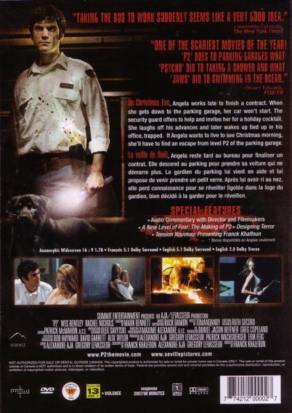 | Extras | - Audio Commentary with Director and Filmmakers - A New Level of Fear: The Making of P2 - Designing |