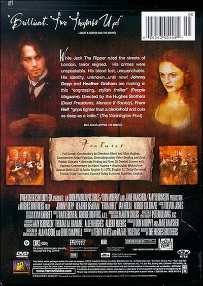 Frederick Abberline is an opium-huffing inspector from Scotland Yard who falls for one of Jack the Ripper's prostitute targets in this Hughes brothers adaption of a graphic novel that posits the Ripper's true identity.