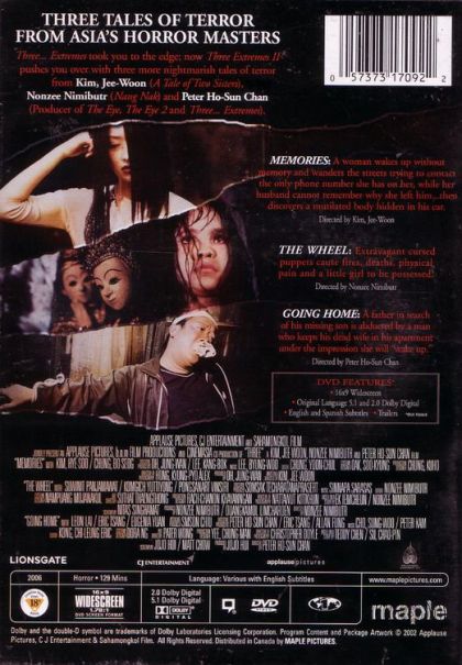 An anthology consisting of three horror shorts from different Asian directors: Memories by Kim Jee-woon, The Wheel by Nonzee Nimibutr, and Going Home by Peter Chan.