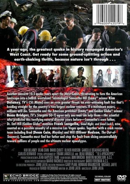 A jolted West Coast deals with the deadly aftereffects of a massive tremor in this sequel to the disaster drama 10.5. Concerned that a widening fault line may set off two nuclear reactors, seismologist Samantha Hill (Kim Delaney) contacts the president (Beau Bridges). Assembling an expert rescue team, they search for the one man who can help them: Samantha's father (Frank Langella), a scientist who predicted this catastrophe. Dean Cain co-stars.