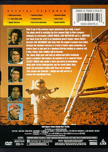 In order to protect the reputation of the American space program, a team of NASA administrators turn the first Mars mission into a phony Mars landing. Under threat of harm to their families the astronauts play their part in the deception on a staged set in a deserted military base. But once the real ship returns to Earth and burns up on re-entry, the astronauts become liabilities. Now, with the help of a crusading reporter, they must battle a sinister conspiracy that will stop at nothing to keep the truth hidden.