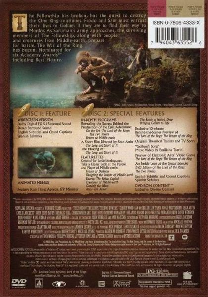 Frodo Baggins and the other members of the Fellowship continue on their sacred quest to destroy the One Ring--but on separate paths. Their destinies lie at two towers--Orthanc Tower in Isengard, where the corrupt wizard Saruman awaits, and Sauron's fortress at Barad-dur, deep within the dark lands of Mordor. Frodo and Sam are trekking to Mordor to destroy the One Ring of Power while Gimli, Legolas and Aragorn search for the orc-captured Merry and Pippin. All along, nefarious wizard Saruman awaits the Fellowship members at the Orthanc Tower in Isengard.