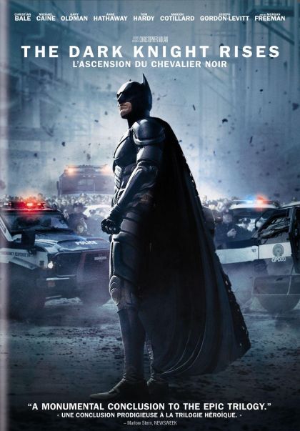 Following the death of District Attorney Harvey Dent, Batman assumes responsibility for Dent's crimes to protect the late attorney's reputation and is subsequently hunted by the Gotham City Police Department. Eight years later, Batman encounters the mysterious Selina Kyle and the villainous Bane, a new terrorist leader who overwhelms Gotham's finest. The Dark Knight resurfaces to protect a city that has branded him an enemy.