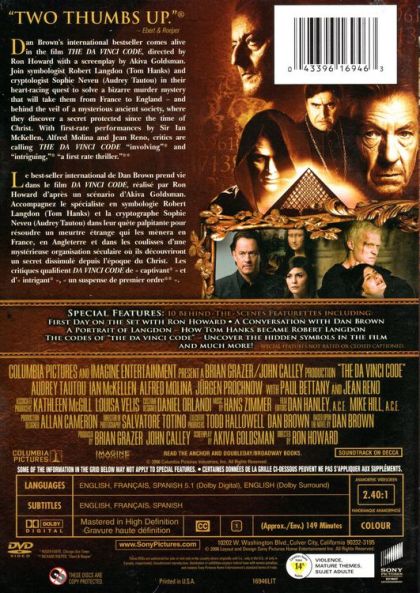 A murder in Paris’ Louvre Museum and cryptic clues in some of Leonardo da Vinci’s most famous paintings lead to the discovery of a religious mystery. For 2,000 years a secret society closely guards information that — should it come to light — could rock the very foundations of Christianity.