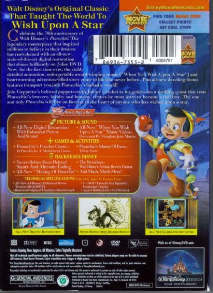 | Extras | All-New "When You Wish Upon A Star" Music Video Pinocchio's Puzzle Game Pinocchio's Matter Of Facts |