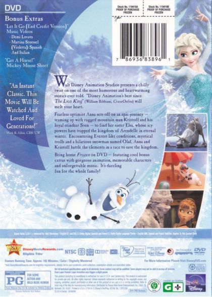 | Extras | Let It Go (End Credit Version) "Get A Horse!" Mickey Mouse Short |