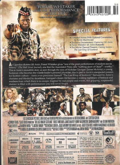 | Extras | 7 Deleted Scenes with Optional Commentary by Kevin MacDonald Exclusive Documentary: Capturing Idi Am |