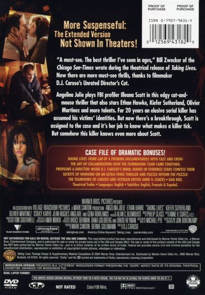 | Extras | Taking Lives Crime Lab of 4 probing documentaries with cast and crew. # The Art Of Collaboration:How |