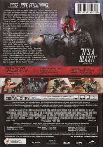 | Extras | • "Mega-City Masters: 35 Years of Judge Dredd" • "Dredd" • "Day Of Chaos: The Visual Effects of Dred |
