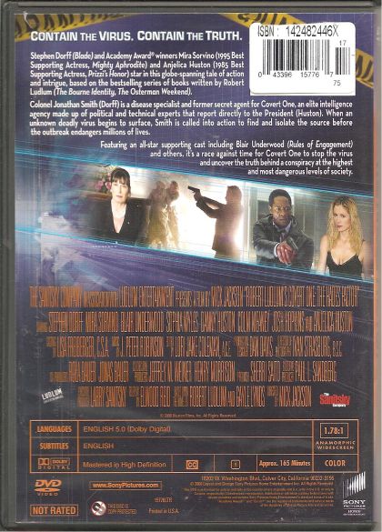 Academy Award winner Mira Sorvino, Academy and Golden Globe Award winner Anjelica Huston and Stephen Dorff star in this nail-biting tale of action and intrigue about members of an elite undercover team who race against time to locate the source of a deadly virus threatening the lives of millions of Americans.
