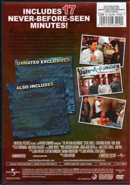 Andy Stitzer has a pleasant life with a nice apartment and a job stamping invoices at an electronics store. But at age 40, there's one thing Andy hasn't done, and it's really bothering his sex-obsessed male co-workers: Andy is still a virgin. Determined to help Andy get laid, the guys make it their mission to de-virginize him. But it all seems hopeless until Andy meets small business owner Trish, a single mom.