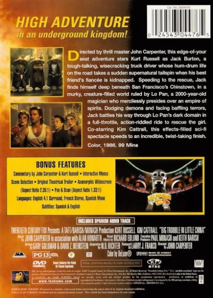 | Extras | Audio Commentary by John Carpenter and Kurt Russell Interactive Menus Scene Selections Original Thea |