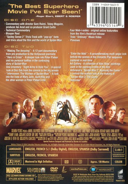 | Extras | Blooper Reel "Spidey Sense 2" Trivia Track with "pop-up" facts and trivia about the film and the wor |