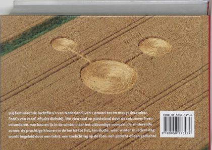 Dit kleine en dikke fotoboek (vergelijk Yann Arthus-Bertrand: 365 dagen, de aarde vanuit de hemel*) biedt voor elke dag in het jaar een seizoensgebonden luchtfoto van een Nederlands landschap, vergezeld van een tekst: een eigen mijmering van de fotograaf of een literair citaat, met een keur aan (vaak 19e eeuwse) gedichten. Nederland is van bovenaf gezien een geordend land met prachtige geometrische patronen. De foto's in kleur lijken vaak op abstracte tekeningen met verrassende lijnen en schaduwwerkingen. Soms is er sprake van bekende locaties, die door het vogelperspectief op vervreemdende wijze in beeld gebracht zijn. Luchtfoto's kennen een toenemende populariteit. Dit is een mooie verzameling van een vakkundige fotograaf. Met register.