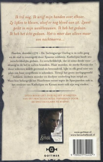 Begin 2014 komt de spectaculaire historische oorlogsfilm 'Kenau' in de bioscoop. Een fantastische cast (met o.a. Monic Hendrickx en Sallie Harmsen als haar dochter Kathelijne) en regisseur Maarten Treurniet (bekend van o.a. 'De Heinekenontvoering') staan garant voor een dijk van een film over deze onverzettelijke Haarlemse heldin en haar strijd tegen de Spaanse bezetter. Lydia Rood liet zich inspireren door het scenario en schreef een jeugdroman over Kathelijne, de buitenechtelijke dochter van Kenau. Wie zich aan zo'n bijzondere moeder moet ontworstelen heeft daar natuurlijk een flinke kluif aan. Lydia weet een jonge vrouw van vlees en bloed neer te zetten, die te midden van het geweld van de 80-jarige oorlog de strijd met haar moeder aangaat. Een fascinerende moeder-dochterrelatie waarin zaken aan de orde komen die een paar honderd jaar later nog actueel en herkenbaar zijn.