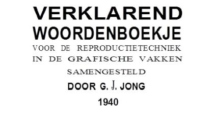 Jong, G., Verklarend woordenboekje voor de reproduktietechnieken (1940)