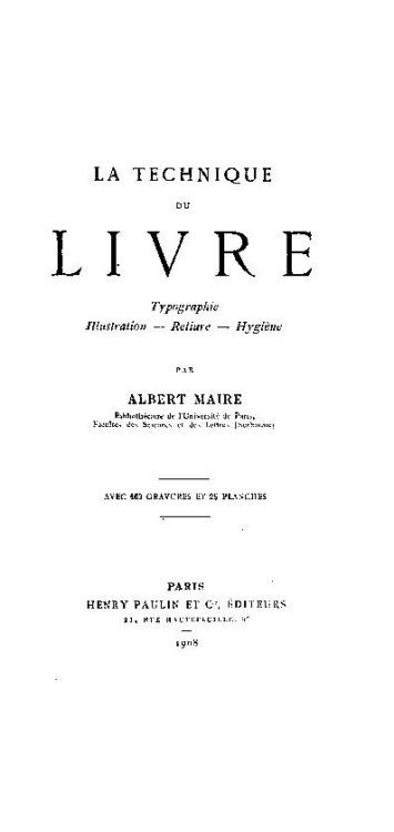Maire, A.., La techniqua du livre (1908)