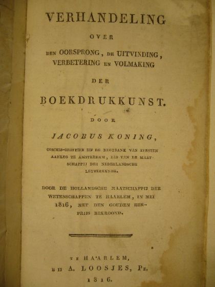 Koning, J., Bijdrage tot de geschiedenis der boekdrukkunst (1820)