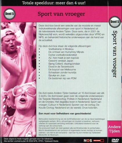 De dvd-reeks Andere Tijden bestaat uit 10 dvd-boxen van elk 3 dvd s. De dvdboxen gaan over de volgende onderwerpen: De Tweede Wereldoorlog; Politiek in Nederland; Nederland en de Oranjes; Het dagelijks leven in Nederland; Sport van vroeger; Cultuur in Nederland; Sporen van de oorlog; De Koude Oorlog; Nederland en de wereld; Onze koloniën.