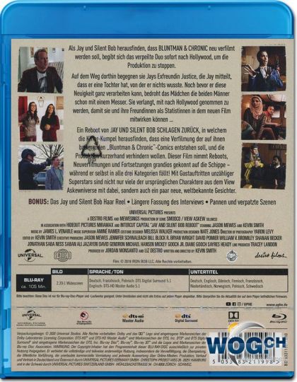 Neues Leinwand-Abenteuer der Kiffer-Kumpel Jay (Jason Mewes) und Silent Bob (Kevin Smith), die sich einmal mehr auf den Weg nach Hollywood begeben, um ein Reboot der von ihnen so gehassten Verfilmung der auf ihnen basierenden "Bluntman & Chronic"-Comics zu verhindern.