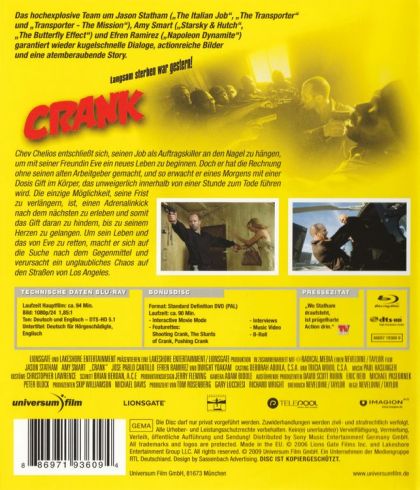 Der Auftragskiller Chev Chelios (Jason Statham) wacht sichtlich benommen durch das Geräusch eines klingelnden Telefons auf. Auf seiner Suche nach dem Telefon entdeckt er eine DVD mit der Aufschrift „Fuck You“. Durch Abspielen der DVD erfährt er, dass er von seinem Widersacher Ricky Verona in seiner eigenen Wohnung niedergeschlagen und anschließend vergiftet wurde – als Rache dafür, dass er den chinesischen Triadenboss Don Kim umgebracht haben soll. Ricky erklärt, dass er durch die Injektion des sogenannten „Beijing-Cocktails“, was ein Gemisch von irreversiblen Betablockern darstellen soll, nur noch kurze Zeit zu leben habe. Daraufhin rast Chev panisch mit seinem Auto quer durch Los Angeles. Auf seiner Fahrt bemerkt er, dass sich sein gesundheitlicher Zustand durch Stress offenbar verbessert. Er versucht, seinen Arzt Miles zu erreichen; dieser befindet sich aber gerade auf dem Rückflug nach Los Angeles.