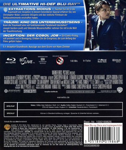 Dom Cobb is a skilled thief, the absolute best in the dangerous art of extraction, stealing valuable secrets from deep within the subconscious during the dream state, when the mind is at its most vulnerable. Cobb's rare ability has made him a coveted player in this treacherous new world of corporate espionage, but it has also made him an international fugitive and cost him everything he has ever loved. Now Cobb is being offered a chance at redemption. One last job could give him his life back but only if he can accomplish the impossible - inception. Instead of the perfect heist, Cobb and his team of specialists have to pull off the reverse: their task is not to steal an idea but to plant one. If they succeed, it could be the perfect crime. But no amount of careful planning or expertise can prepare the team for the dangerous enemy that seems to predict their every move. An enemy that only Cobb could have seen coming.