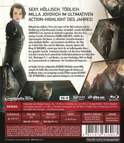 The Umbrella Corporation’s deadly T-virus continues to ravage the Earth, transforming the global population into legions of the flesh eating Undead. The human race’s last and only hope, Alice (Milla Jovovich), awakens in the heart of Umbrella’s most clandestine operations facility and unveils more of her mysterious past as she delves further into the complex. Without a safe haven, Alice continues to hunt those responsible for the outbreak; a chase that takes her from Tokyo to New York, Washington, D.C. and Moscow, culminating in a mind-blowing revelation that will force her to rethink everything that she once thought to be true. Aided by newfound allies and familiar friends, Alice must fight to survive long enough to escape a hostile world on the brink of oblivion. The countdown has begun.