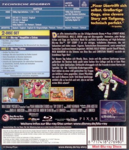 | Writer | John Lasseter, Andrew Stanton, Lee Unkrich, Michael Arndt, Mark Andrews, David Reynolds, Justin Wright | |