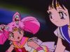 Chibi Chibi arrives in this episode. Pluto tells the sailor scouts to just be on guard around her. Chibi Chibi, like Chibiusa, makes Usagi's family believe that she is Usagi's younger sister. Sailor Aluminum siren first appears in this episode. She takes a police guard's star seed, but it wasn't a real star seed. ESM and pluto arrive. ESM uses her starlight honeymoon therapy kiss to return him back to normal. At home, Usagi is dissappointed that she hasn't heard from Mamoru. Then chibi chibi comes in, Usagi asks if she wet her pants while sleeping. Chibi Chibi frowns, Usagi says she can sleep with her. They both fall asleep.