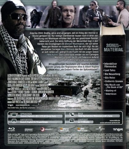 After the Apocalypse Eli (Denzel Washington) holds the secrets to saving the world in his sacred book. As Eli fights his way across the country he stumbles upon a small town run by Carnegie (Gary Oldman) and is asked to join the community after showing his explosive strength in a bar brawl. As soon as Carnegie learns of the treasure Eli holds a battle begins.